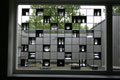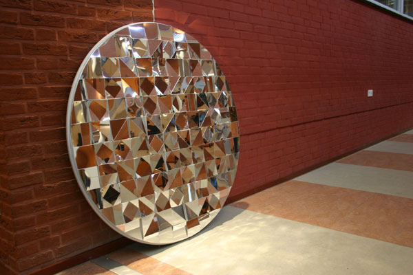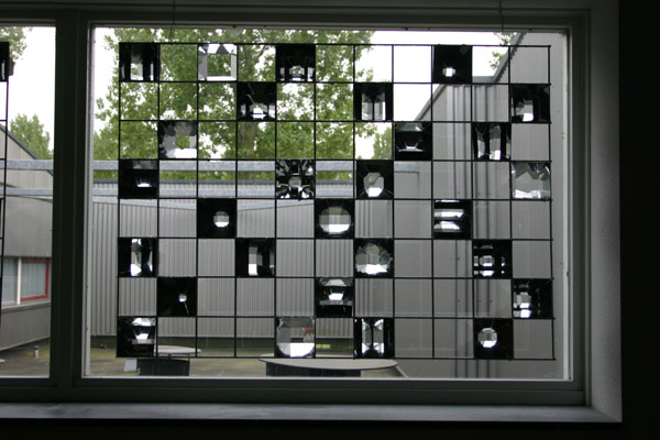 Een deel van de panelen is spiegelend waardoor ook virtuele ruimte's ontstaan. De spiegels dragen de speelwensen van de kinderen uit de buurt.