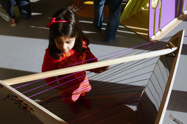 Installatie speciaal gemaakt voor de NSDSK theaterdagen voor dove en slechthorende kinderen. Het werd een geluidsinstallatie... geinspireerd door het werk van de dove percussionist Evelyn Glennie: horen doe je met al je zintuigen!